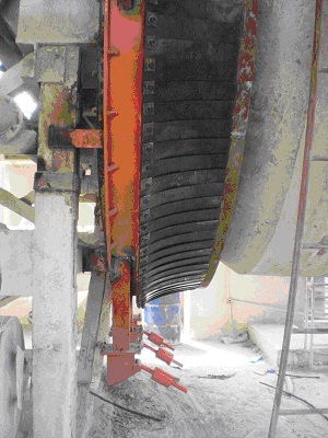 e)這種密封形式可以適應(yīng)回轉(zhuǎn)窯筒體徑向跳動、軸向串動等問題,在筒體變形、偏擺和串動的情況下,仍然能夠保證良好的密封,有利于改善窯漏風(fēng),熱工制度很難穩(wěn)定、熟料升重低、結(jié)圈現(xiàn)象,臺時產(chǎn)量、熟料質(zhì)量偏低等問題。